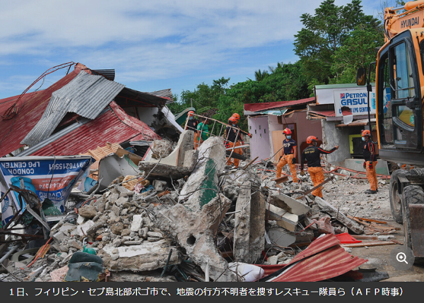 フィリピン火山地震研究所によると、フィリピン中部セブ島の北部沖で