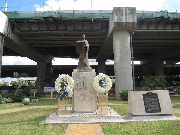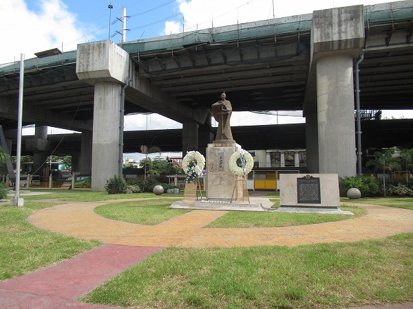 ロハス通りからキリノ通りに入り、しばらく進むと左側に「PLAZA DILAO PHILIPPINES-JAPAN FRIENDSHIP PARK」があり、その公園内に銅像が設置されています。