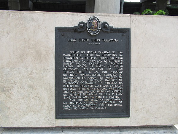 その高山右近の銅像がマニラ市のパコにあります。