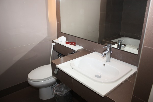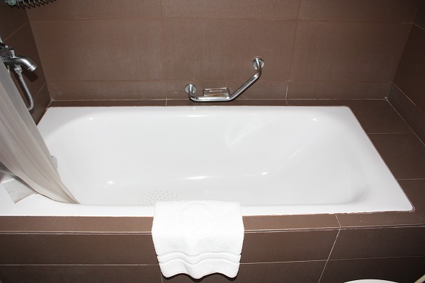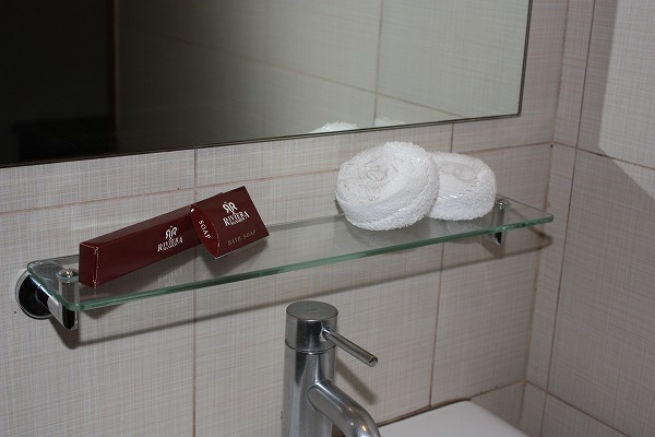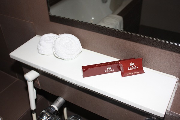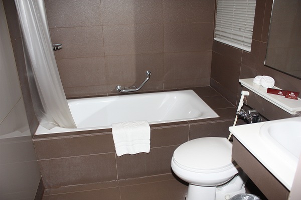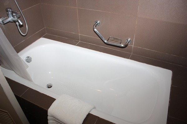特徴はバスタブ。デラックスルームと違い、据え置き型でおしゃれ感が出ています。