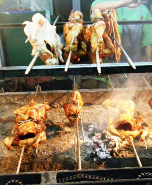 串焼きは1本5ペソから10ペソ。鶏のモモ肉は4~50ペソ。